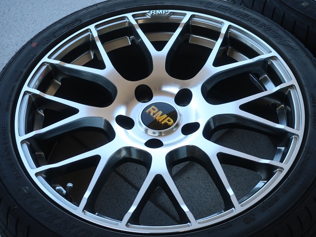 荒目のメッシュがスポーティで高級感のある、MID RMP 028Fと、ダンロップルマンVの中古ホイール&タイヤのセットです。ホイールはF20系・E87系の1シリーズにピッタリなサイズ。5ホールPCD120で、7.5J、IS43となります。カラーはハイパーメタルコート。タイヤはダンロップルマンVで、サイズは225/40R18で、残り溝もしっかりと残っているので、欲しいと思ったら店頭に来ていただければ、すぐに取り付けることが可能です。価格はお電話かメールにてお問い合わせください(メールの場合、返信が遅れる場合がございますので、お急ぎの方はお電話でお願いします。)