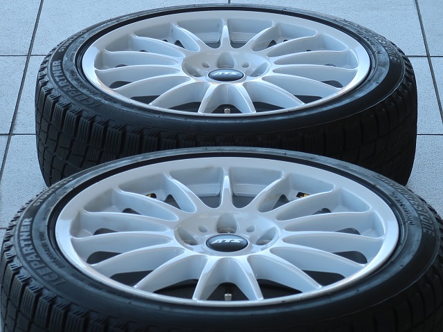 R60系ミニクロスオーバーにピッタリな、中古ホイール&スタッドレスタイヤのセットとなります。ホイールはラリーカーのようなワイルド&スポーティなデザインの、ATSストリートラリーで、カラーはラリーホワイト。タイヤはブリヂストンのアイスパートナーで、残り溝もしっかりとあります。ホイール2本に、ガリ傷にホワイトのタッチアップペイント跡がありますので、実際にご覧頂く事をお勧めします。スタッドレスタイヤがすり減ったら、このホイールにゴツめなタイヤを履いて、ちょっとリフトアップさせたりすると、あなたのミニクロスオーバーがラギットなスタイルに大変身しますね!価格はお電話かメールにてお問い合わせください(メールの場合、返信が遅れる場合がございますので、お急ぎの方はお電話でお願いします。)