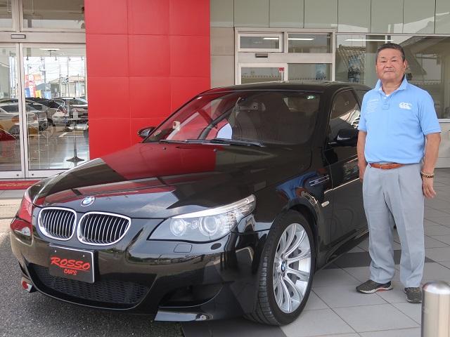今までBMWは何台も乗りましたが、どうしてもV型10気筒エンジンのM5に乗りたくて、長いこと探していました。実はホワイトの左ハンドルが第一希望だったのですが、ずいぶん探しましたが希望に合う車が全然出てこなくて、ロッソカーズさんにあるブラックの右ハンドルを購入する事にしました。写真と電話で判断したので実車を見たのは納車の日は初めてでした。