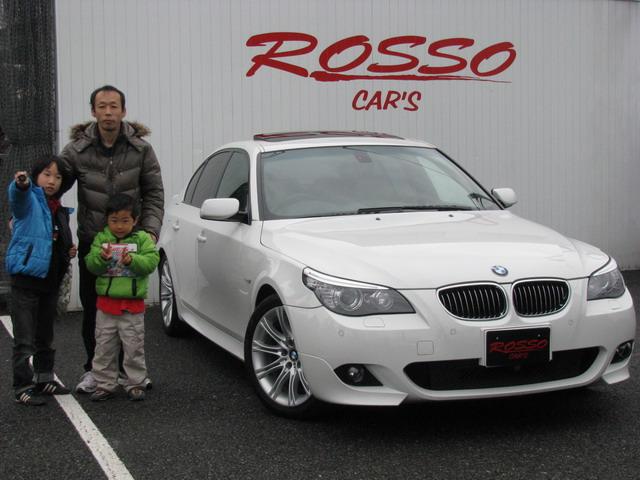 メルセデスベンツと国産スポーツカーを所有していましたが、1年ほど前に両方とも手放して、次のクルマをいろいろ探していました。E60系5シリーズの後期モデル・Mスポーツで探したのですが、なかなか良いクルマに巡り合えずにいたのですが、インターネットでロッソカーズを知り、実際に見てみました。思った以上に程度が良く、妻も気に入ってくれたし、試乗したらすっかり気に入ってしまい、その場で購入を決めました。