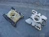 お客様からラジエター冷却水が減るという症状を聞いて、詳しく点検したらウォーターポンプの中心軸部分から漏れていました。冷却水は乾くと白い跡が残るのですぐ分かりますね。今回は周辺のサーモスタットやサーモハウジングも一緒に交換。