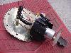 本体はリベットでガッツリ固定されてるので電動ドリルで外します。指で指してる箇所が曲がった部分。今回はモーターは大丈夫なので元のものを移植。グリスも塗ってあげましょう。
