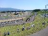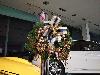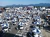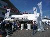 ③絶品グルメのフードコートと、奥は特設ステージ。レーサーや、ニュー5シリーズのブランドフレンド中田英寿さんのトークショーなどで大盛況!