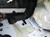 ①ドアは問題なかったので、雨漏りの経路を見てみると、助手席足元のようす。