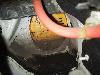 ④実はこれ、左ハンドル車のステアリングシャフトが通る穴を塞ぐフタ。ボロボロですね・・・。