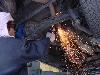②マフラーが錆で固着したのでサンダーでゴッソリ切断。この時期に厚着で火花散らすとは過酷な職場ですよね。