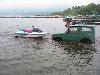 ③山中湖で船の積み下ろしをしてくれるジムニー。四駆ってこんなに浸かって大丈夫なの?